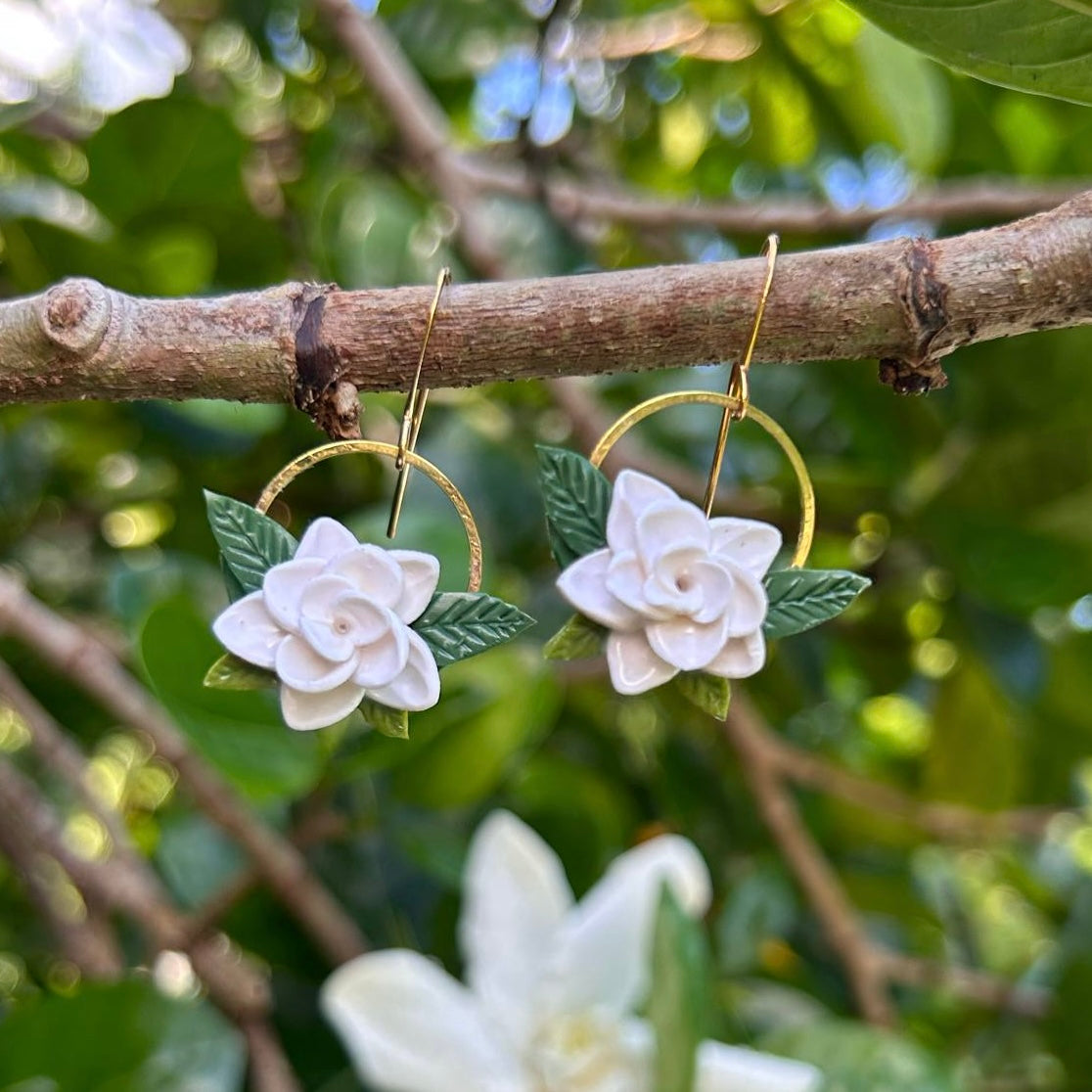 • Handcrafted Polymer Clay Gardenia Earrings by Roji Ella Handmade (Made in American Samoa)
